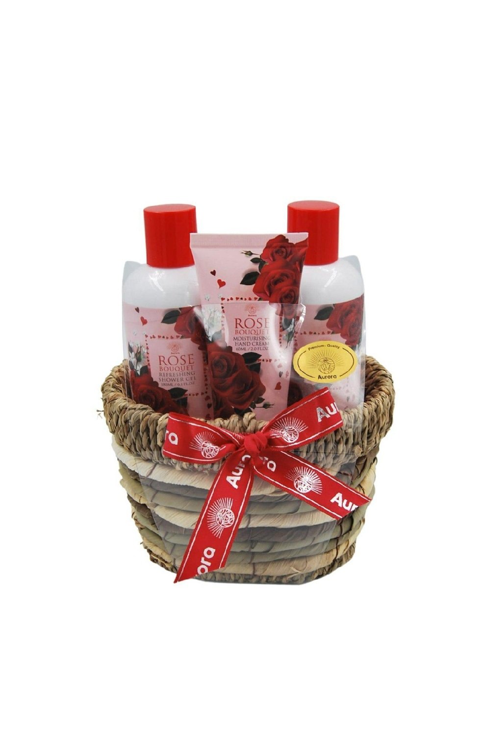 Darčekový set kozmetiky Aurora – Ruža. Krásne zabalená darčeková sada kozmetiky, ideálna ako darček pre vašich blízkych. Aurora Ruža prináša každodennú starostlivosť a príjemné chvíle relaxácie pre telo aj myseľ. Elegantný prútený košík navyše poslúži ako praktický a štýlový doplnok do každej domácnosti.