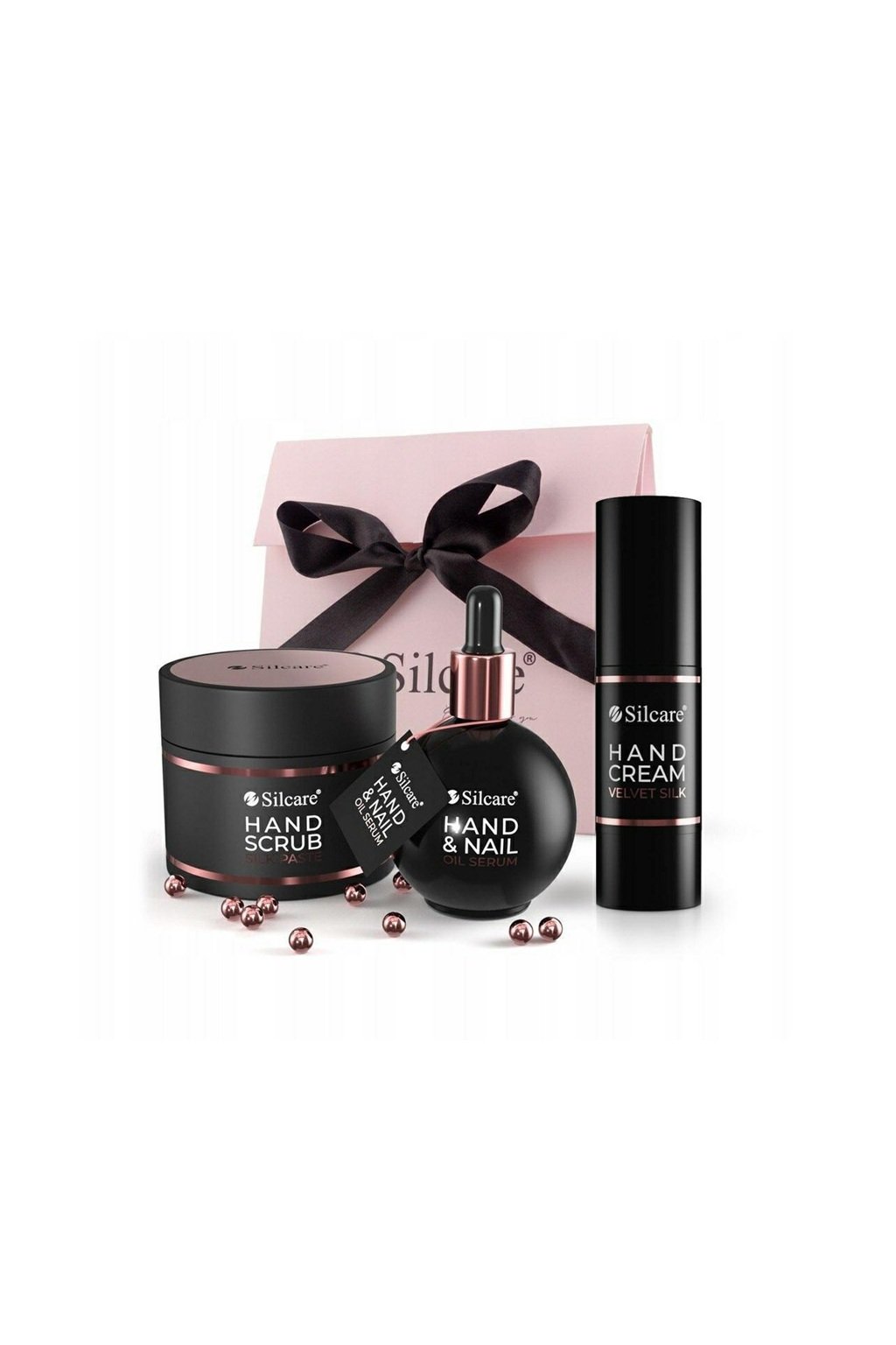 Luxusná sada v elegantnej ružovo-zlatej darčekovej taštičke obsahuje tri dokonale zladené produkty pre kompletný domáci SPA rituál. Spojenie hodvábnej peelingovej pasty, vyživujúceho olejového séra a hydratačného krému zanechá pokožku rúk hodvábne jemnú, pružnú a nádherne prevoňanú.