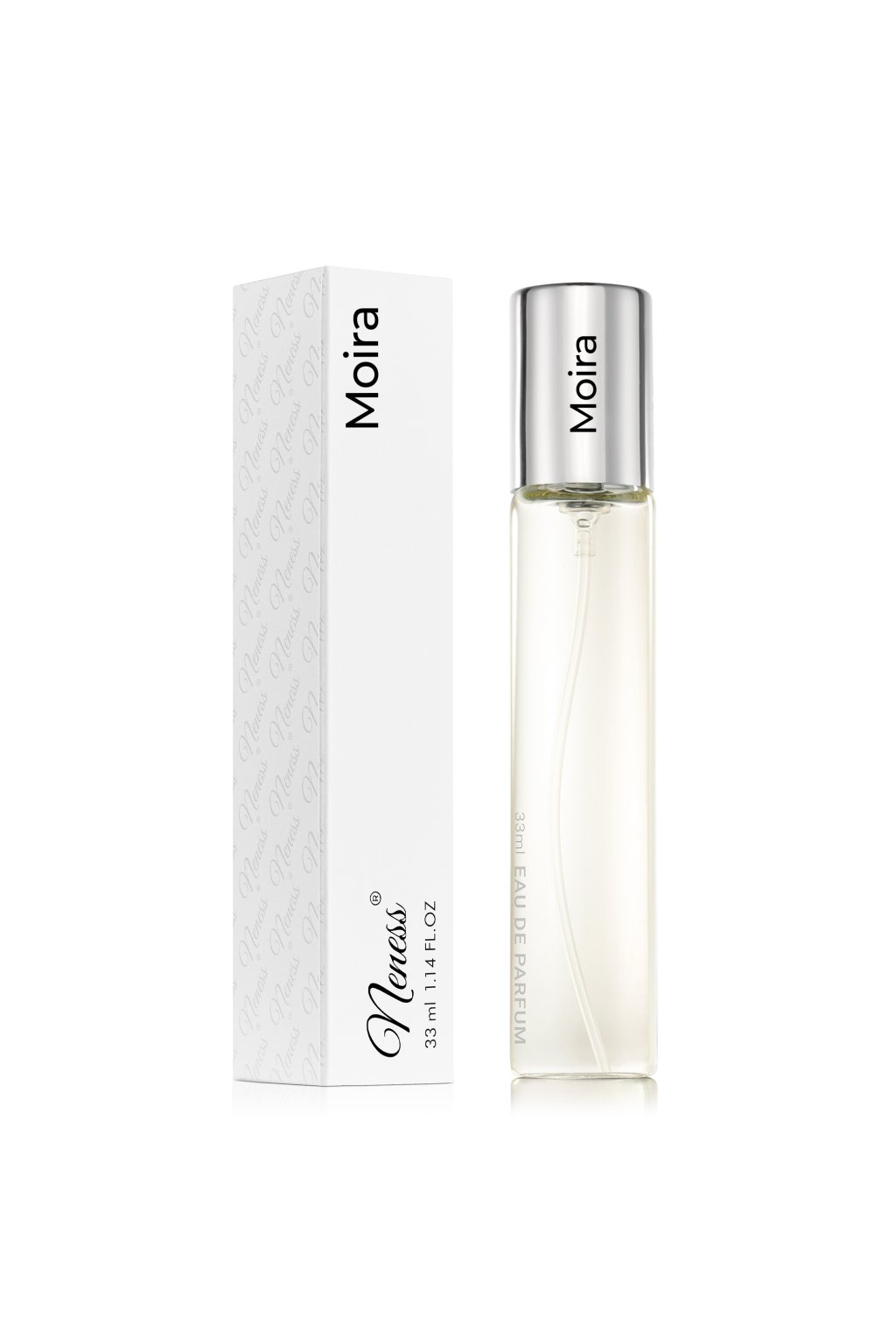 Neness Moira je charizmatická parfémovaná voda pre mužov, ktorí túžia po osviežujúcej a zároveň sofistikovanej vôni. V úvode vás očarí energická kombinácia horkého pomaranča, chrumkavého jablka Granny Smith a šťavnatej mandarínky, ktorá dodáva vôni sviežosť a vitalitu. Srdce parfumu odhaľuje morské tóny, ktoré evokujú svieži vánok oceánu, v dokonalej súhre s kardamómom, muškátovým orieškom a čajom, ktoré vôni dodávajú hĺbku a ľahko korenený akcent. Základné tóny sú hrejivé a mužné – prepájajú sa tu virgínsky borievka, santalové drevo, biele pižmo, tonka fazuľa, vetiver a dubový mach, ktoré podčiarkujú zmyselnosť a dlhotrvajúcu eleganciu vône.