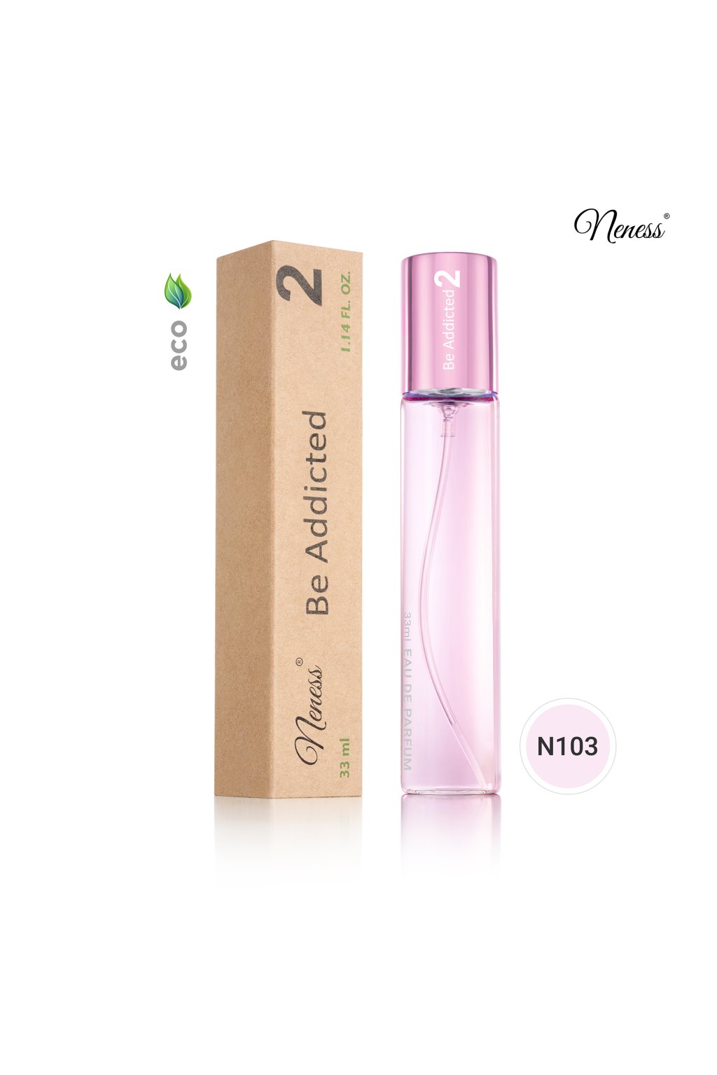 Kvetinovo ovocná vôňa uzavretá v klasickom 33ml flakóne. Prebuďte v sebe charakteristické nežné tóny parfumu Neness Be Addicted 2 a'la Dior Addict Eau Fraîche. Navrhnutý parfum vás iste poteší krásnymi tónmi ovocia a kvetín, v ktorých spoznáte ľalie, bergamot, lotos, ananás, pomaranče a santalové drevo. Tieto vône Vás zahalia sviežou a romantickou aurou. Určite vás nikdy nesklame! Všetko, čo musíte urobiť, je použiť parfum na strategické miesta na tele, a jeho vôňa s vami zostane po celý deň!