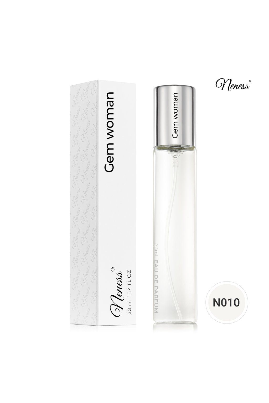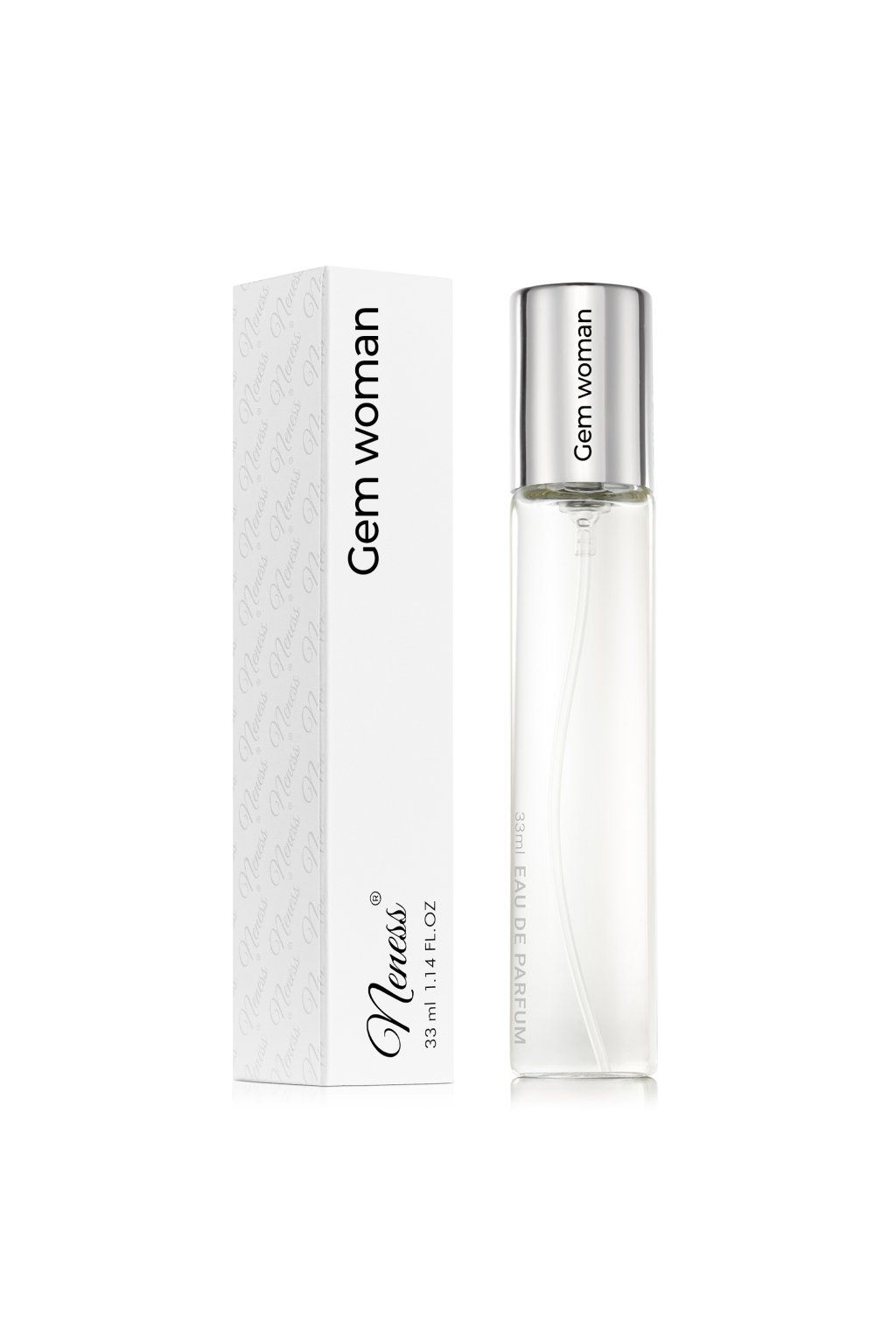 Orientálne drevitá vôňa uzavretá v klasickom flakóne 33 ml. Neness Gem Woman je očarujúca parfumovaná voda pre ženy, ktorá oslní svojou zmyselnou a rafinovanou kompozíciou. Vôňa začína sviežimi tónmi liči a sladkej maliny, ktoré dodávajú vôni hravosť a energiu. V srdci sa rozvíja elegantná kombinácia frézie, ruže, pačuli, cédra a jemnej konvalinky, ktoré vytvárajú harmonický kvetinovo-drevitý akord. Základ vône je hrejivý a zvodný, s tónmi ambry, sladkej vanilky a zemitým vetiverom, ktoré na pokožke zanechávajú dlhotrvajúci dojem zmyselnosti a elegancie. Tento parfém je ideálny pre ženy, ktoré chcú vyžarovať sebavedomie a sofistikovanosť.