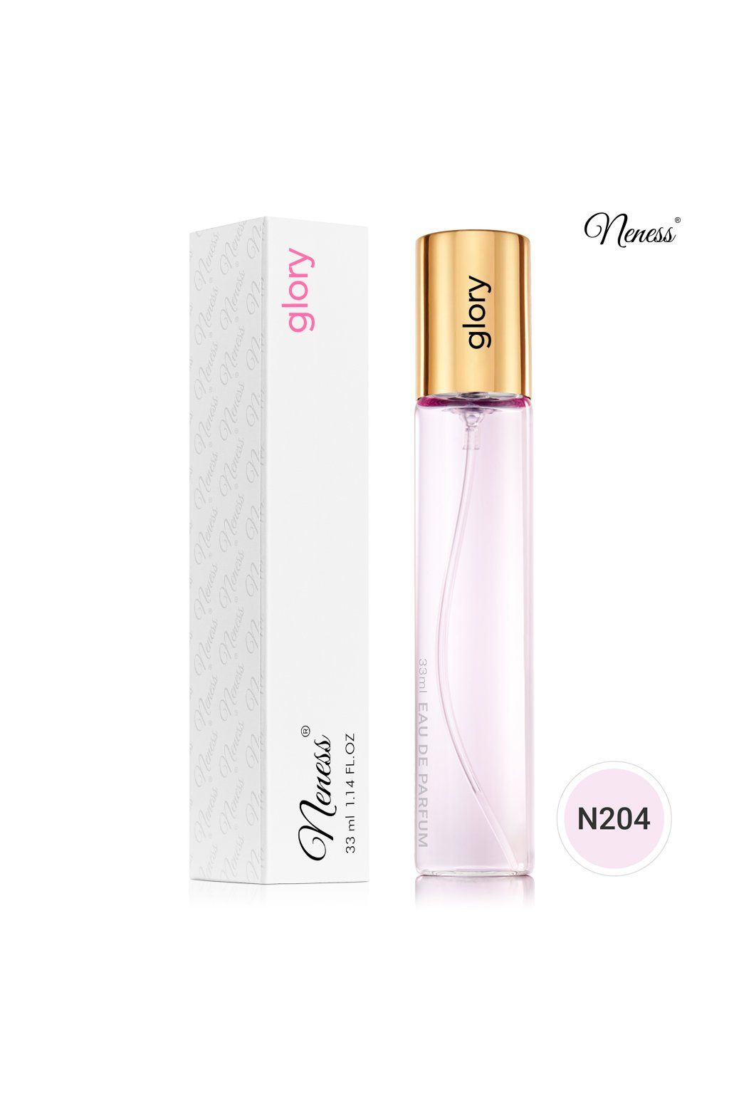 Kvetinová vôňa uzavretá v klasickom 33ml flakóne. Buď ikonickou a nikdy nekončiacou inšpiráciou sama seba. Parfum Neness Glory ti dodá sebadôveru, a úplný pocit dokonalosti, ktorá nepozná hranice. Číra kvetinová vôňa s cyprusovým akcentom, určená pravým dámam, ktoré chcú zvýrazniť svoju sebadôveru a ženskosť. Výnimočný a nezvyčajne štíhly flakón, ktorý skvele padne do dlane.