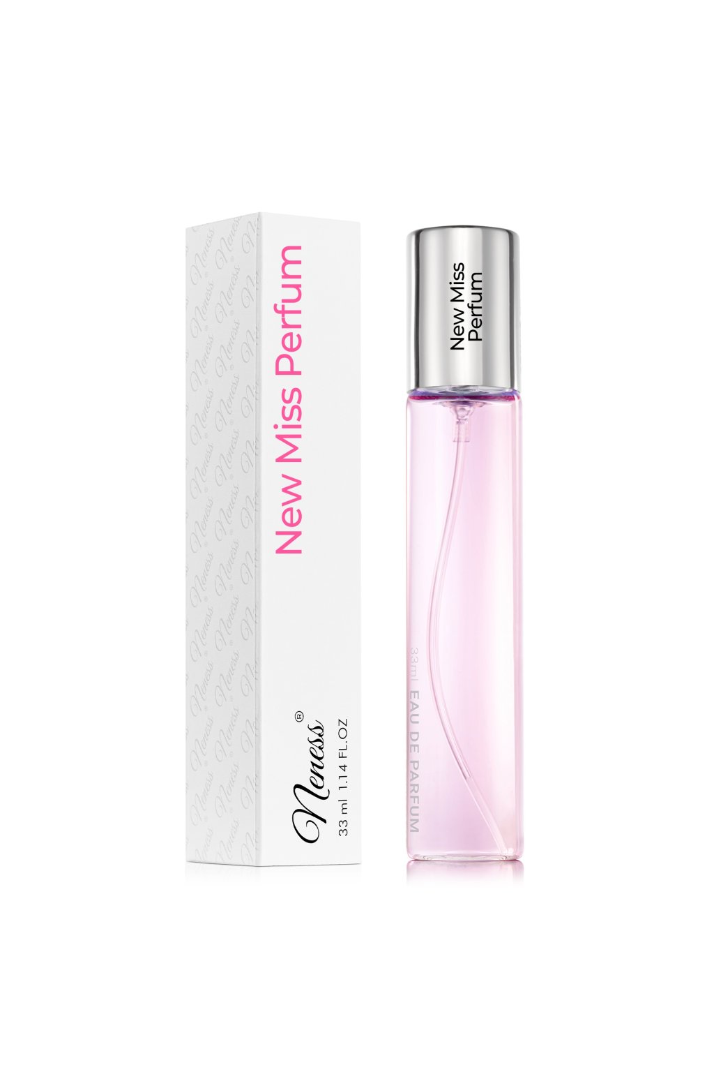 Neness New Miss Perfum je očarujúca parfumovaná voda pre ženy, ktoré milujú svieže ovocné tóny v harmónii s elegantnými kvetmi a zmyselným drevitým základom. Vôňa sa otvára šťavnatými akordmi mandarínky, broskyne a marhule, ktoré jej dodávajú radostnú iskru a energiu. V srdci sa rozvíja jemná kvetinová kompozícia s jazmínom, kvetinovými tónmi a sladkými lesnými jahodami, ktoré podčiarkujú ženskosť a romantickú atmosféru. Základ vône tvorí hrejivá ambra, hlboké pačuli a elegantný céder, ktoré dodávajú parfému zmyselnosť a dlhotrvajúcu stopu.