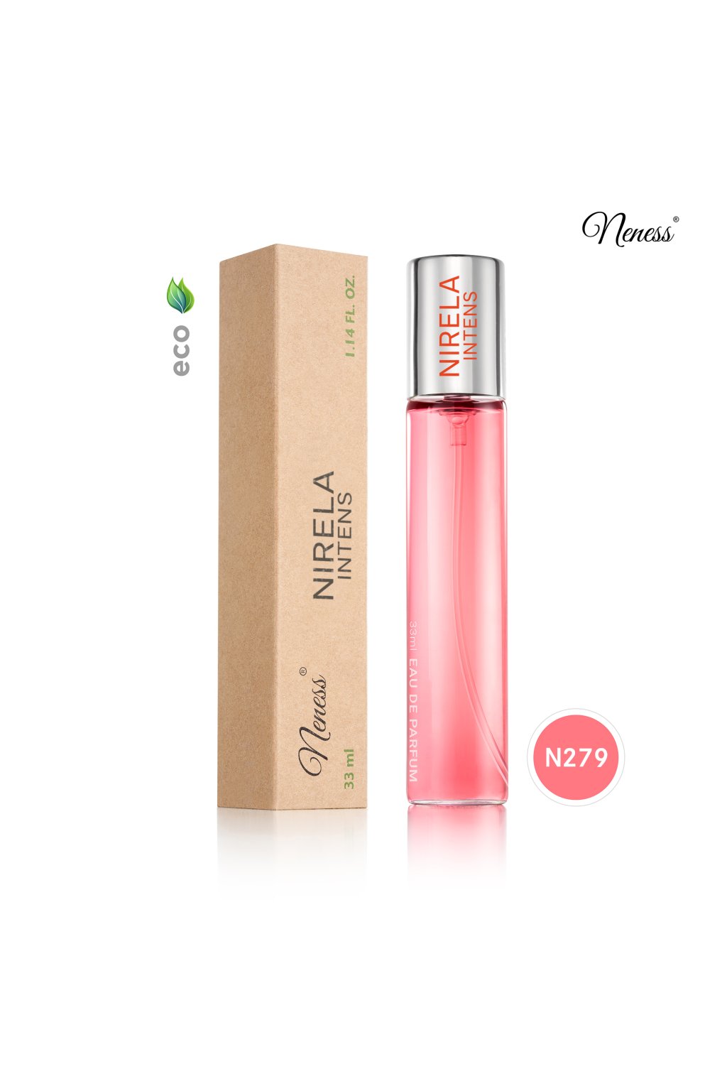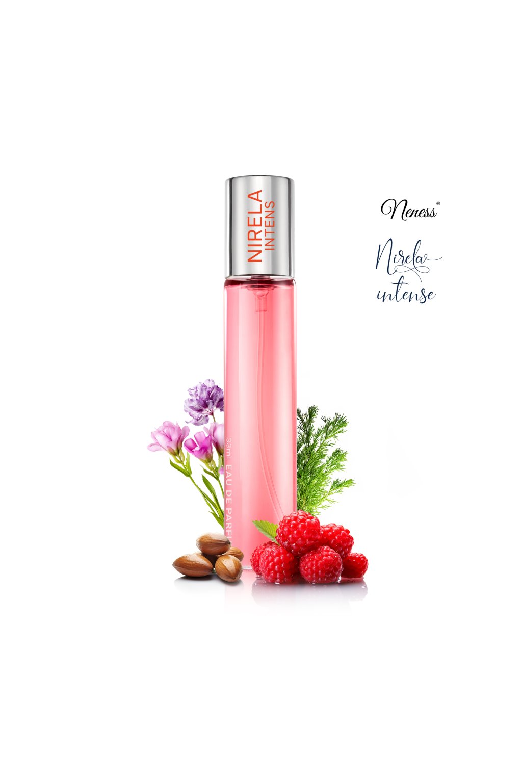 Neness Nirela Intens je parfumovaná voda pre ženy, ktorá ponúka jedinečnú a podmanivú vôňu. Hlava tejto vône začína sladkými a šťavnatými tónmi maliny, ktoré prinášajú sviežosť a ovocnú energiu. Srdce vône tvorí zmyselnú a delikátnu arómu amaretto, ktorá dodáva parfému hĺbku a jedinečnosť. Základ vône sa uzatvára hrejivými drevitými tónmi, ktoré zaisťujú dlhotrvajúci a elegantný finiš. Neness Nirela Intens je ideálnou voľbou pre ženy, ktoré chcú vyžarovať sofistikovanosť a príťažlivosť s každým nádychom tejto nezabudnuteľnej vône.