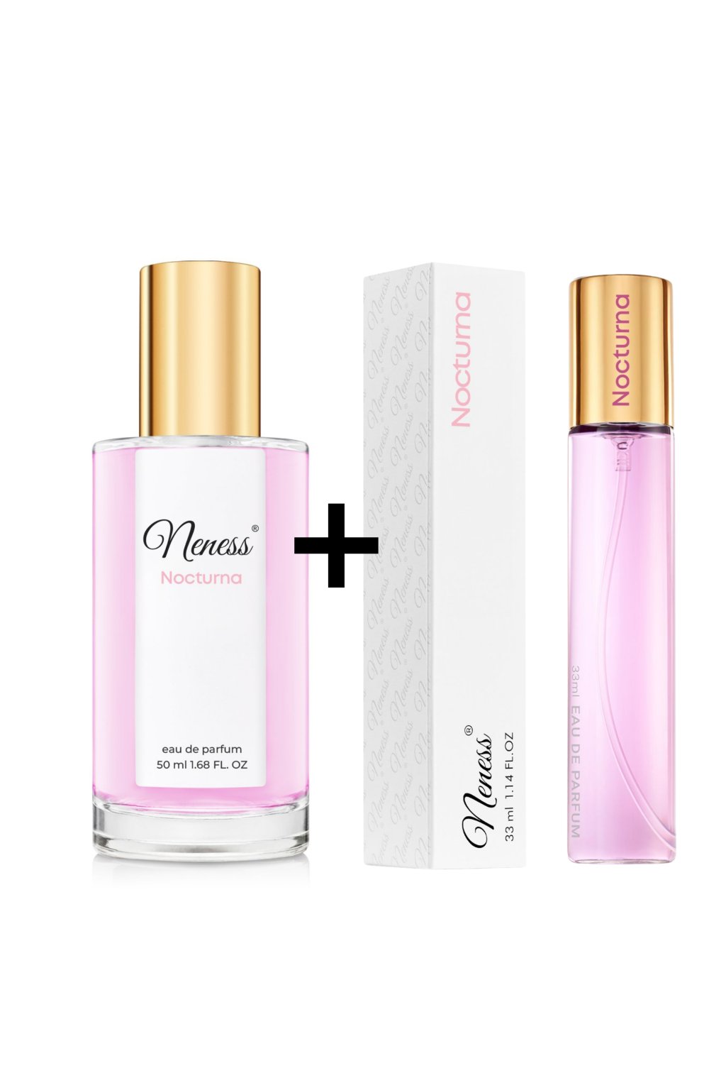 Neness Nocturna je parfémovaná voda pre ženy, ktorá očarí svojou jedinečnou kombináciou vôní. Otvára sa sviežou a exotickou pitahayou, ktorá prebúdza zmysly a prináša okamžité osvieženie. Srdce parfému tvorí jemná a romantická pivonka, ktorá dodáva kompozícii nežný a sofistikovaný charakter. Základ parfému tvoria zmyselná vanilka, ktorá vytvára teplý a elegantný finiš, ktorý zanechá vašu prítomnosť v pamäti. Neness Nocturna je ideálna na večerné príležitosti aj na chvíle, keď chcete zažiariť počas dňa.