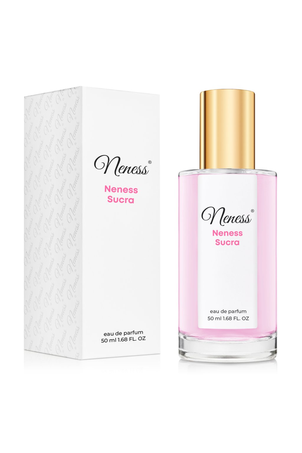 Neness Sucra je odvážna a hravá parfumovaná voda pre ženy, ktoré milujú sladké, neodolateľné vône s originálnym charakterom. V úvode vás očarí lahodná kombinácia marshmallow, hrušky, rumu a vanilky, doplnená o nežné tóny fialkových lístkov a exotického ylang-ylangu. Srdce vône je ako cukrový sen – nájdete v ňom sladkú žuvačku, karamel, kvety jazmínu a cukríky Jelly Beans, ktoré vytvárajú skutočne gurmánsky dojem. Základ dotvára zmyselné kašmírové a santalové drevo, tonka fazuľa, vetiver, pačuli a cukrová stopa, ktorá na pokožke zanecháva teplý, dlhotrvajúci dojem. Neness Sucra je dokonalou voľbou pre všetky, ktoré chcú voňať výrazne, sladko a nezabudnuteľne.