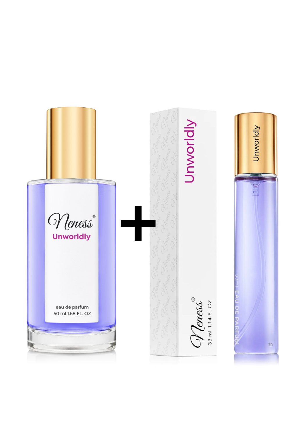Drevito orientálna vôňa. Objavte sa ako tajomná a záhadná bytosť s parfumom Neness Unworldly. Unworldly robí každú ženu výnimočnú vďaka svojmu parfumu. Dáva Vám pocit slobody, nezávislosti a nekompromisnej príťažlivosti! V zložení parfumu môžeme cítiť intenzívne tóny jazmínu, jantáru a kašmíru. Vyžarujte svoju slobodu s Neness Unworldly! Vôňa vám vydrží po celý deň.