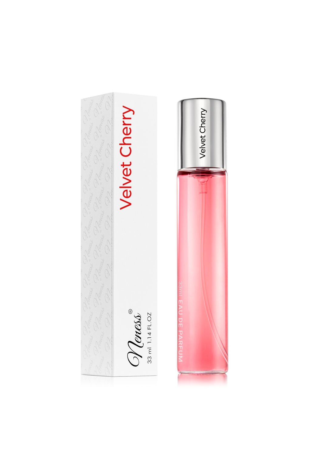 Neness Velvet Cherry je zmyselná parfumovaná voda pre ženy, ktorá vás očarí svojou podmanivou a elegantnou kompozíciou. Vôňa sa otvára výrazným akordom šťavnatej čerešne, ktorej sladkosť dokonale dopĺňa pikantné ružové korenie, ktoré dodáva kompozícii iskrivosť a sviežosť. V srdci sa rozvíja nežné tóny jazmínu, ktorého kvetinová elegancia podčiarkuje ženskosť tejto vône. Základ je hrejivý a sofistikovaný vďaka kašmírovému drevu a sladkej fazule tonka, ktoré dodávajú vôni zmyselnú hĺbku a dlhotrvajúcu stopu.