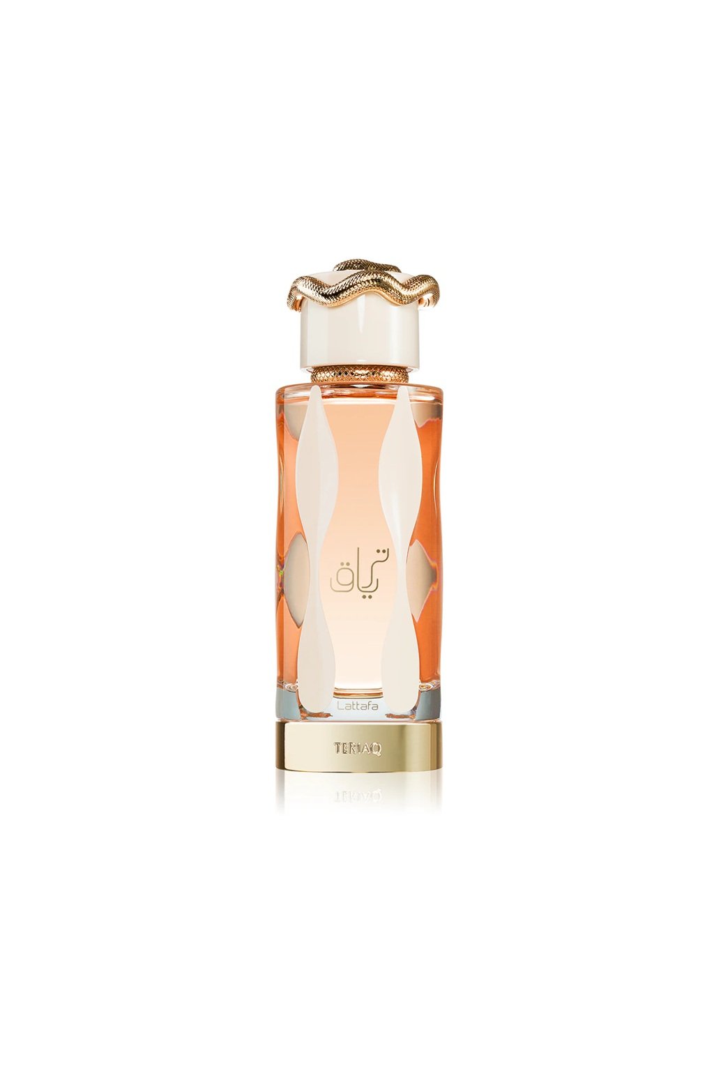 Lattafa Teriaq je unisex parfumovaná voda s výrazným charakterom, ktorá spája sladké, korenisté aj zemito zmyselné tóny do dokonale vyváženej kompozície. V úvode sa rozohráva nezvyčajné spojenie karamelu, ružového korenia, horkých mandlí a šťavnatej marhule, ktoré vás okamžite zaujme svojou intenzitou a originalitou. Srdce vône odhaľuje jemnejšie tóny – medovo nasladlú rebarboru, biele kvety a nežnú ružu, ktoré dodávajú parfému zamatovú hĺbku. V závere ucítite zmyselné tóny kože, upokojené hrejivou vanilkou, živicovým labdanom, pižmom a zemitým vetiverom. Lattafa Teriaq je odvážna, sofistikovaná vôňa, ktorá podčiarkne vašu jedinečnosť a zanechá nezabudnuteľný dojem.