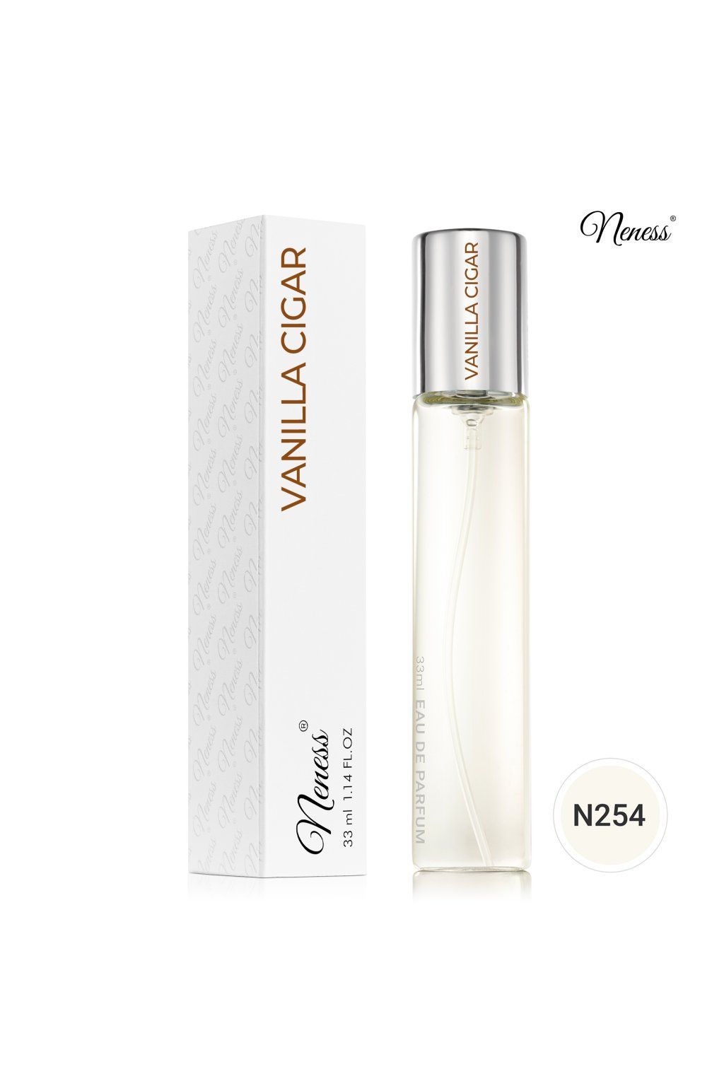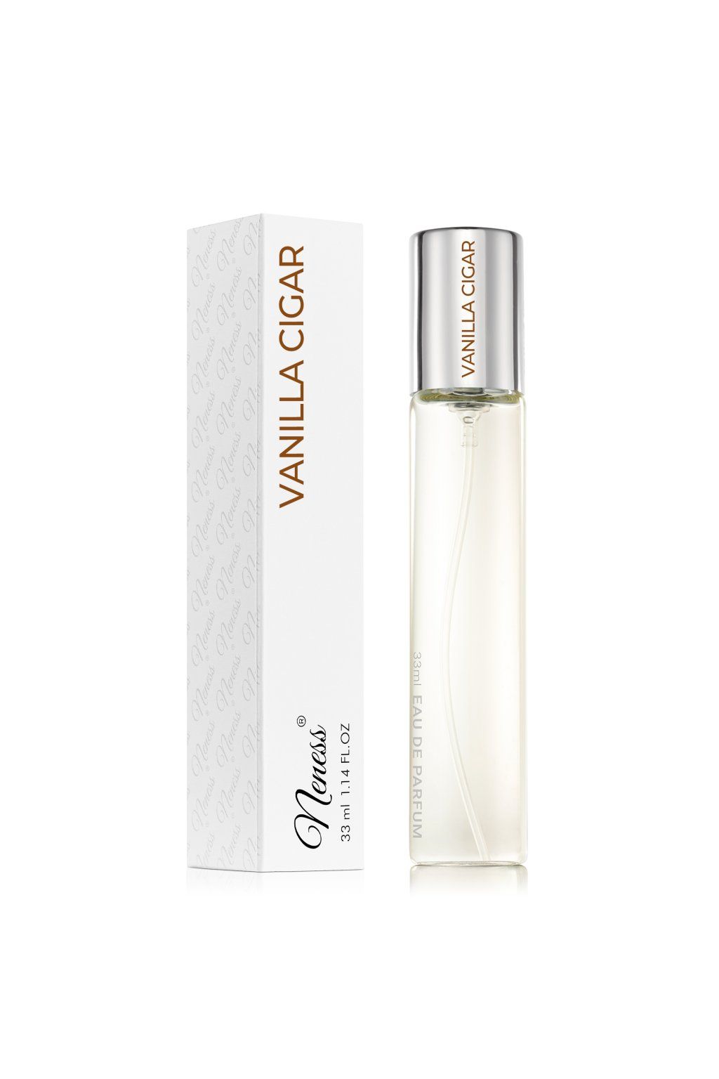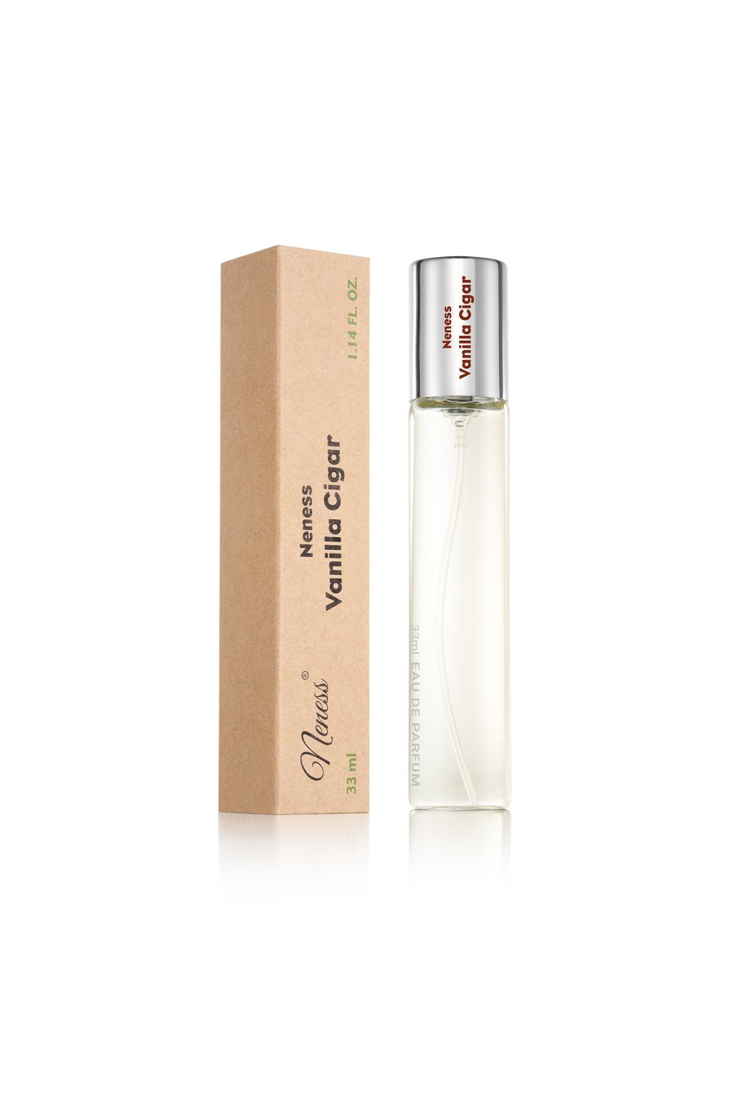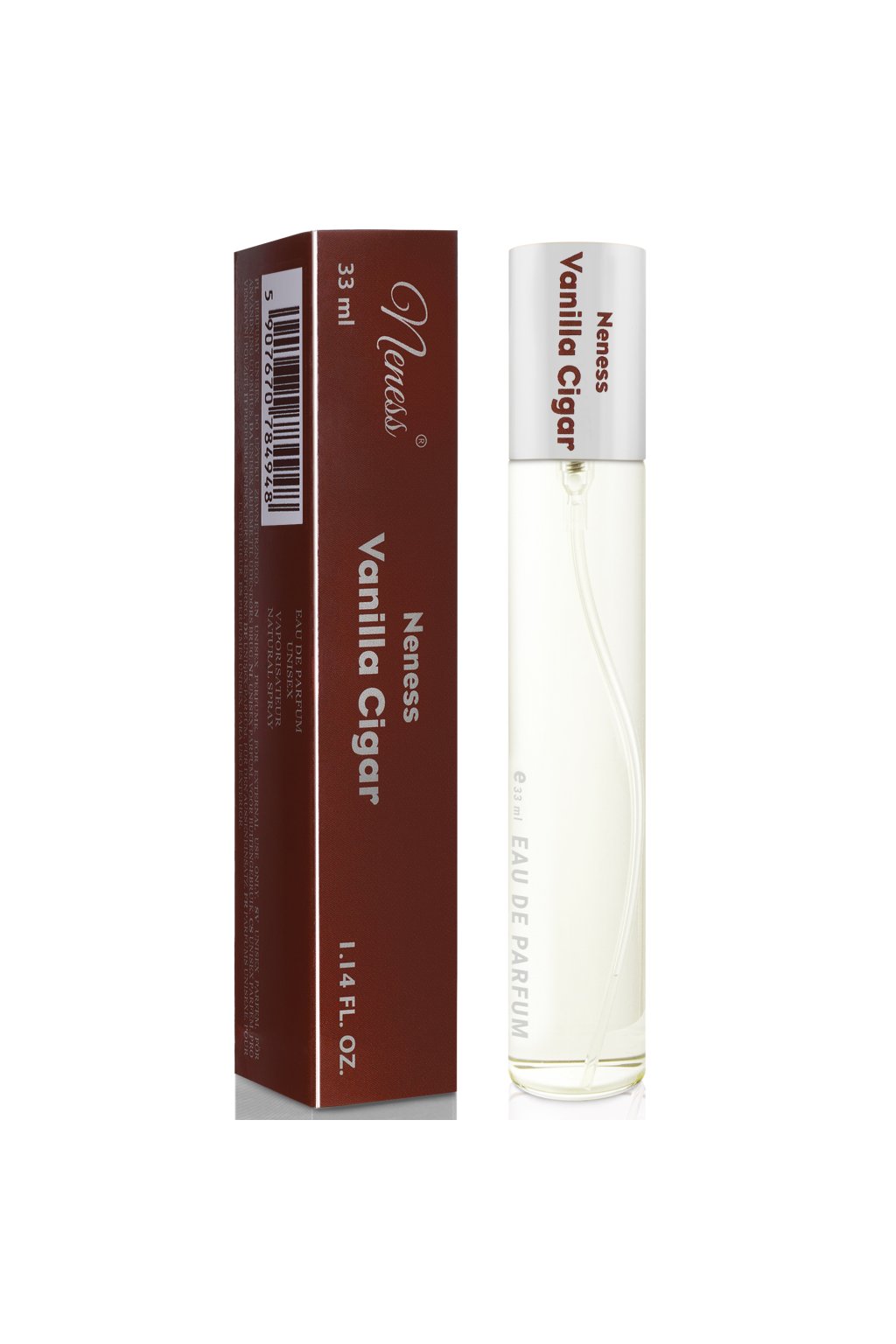 Orientálne korenená vôňa uzavretá v klasickom flakóne 33 ml. Aj keď sa to môže zdať ako samozrejmá kombinácia, tabak a vanilka tvoria nádherný pár. Presvedčí vás o tom parfémovaná voda Neness Vanilla Cigar, ktorá skvele vonia ženám aj mužom. Nedivte sa teda, až to doma začne záhadne miznúť – vaša polovička to jednoducho používa tiež. Vo vonnej kompozícii parfémovanej vody Neness Vanilla Cigar sa v dominantnej dvojici snúbi vanilka s vôňou tabaku. Rozkošné srdce tvorí akordy tonka bôbov, tabakových kvetov a kakaa. Základ tvoria tóny sušeného ovocia a dreva.